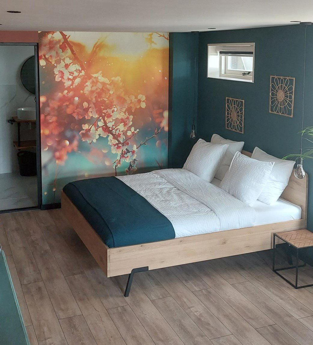U krijgt bij ons een mooie ruime kamer van ongeveer 35 m2. De kamer bevindt zich op de begane grond en beschikt over een eigen entree. Eenmaal binnen bevindt u zich in de hal die u kunt gebruiken als inpandig terras. Als u beide deuren openslaat kunt u verdraaid fijn genieten van ons ontbijt met spectaculair uitzicht over de haven en de grote kerk op de achtergrond.